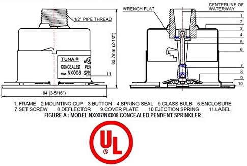 Tuna Ul Cul Listed 1 2 Npt Fire Sprinkler Head 155 F 68 C Concealed Pendent Spray K80 Standard Response For Automatic Fire Sprinkler System Concealed Head With White Cover Plate Amazon Com